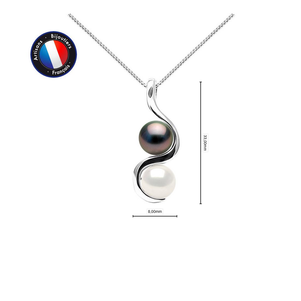 Imaginez-vous porter cette création exquise, recevant des compliments pour son éclat et son design délicat. Le lavis argenté de la chaîne met en valeur les perles avec une élégance subtile mais prononcée. L'association de la perle de Tahiti noire et de la perle d'eau douce blanche crée un contraste fascinant et inoubliable.